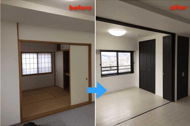 和室から洋室へリフォームする場合、畳を撤去して補修した後にフローリングを張ります。工期はおよそ5日程度。一例として、6畳の和室を洋室にリフォームし、収納も造った場合の費用は500,000円~です。